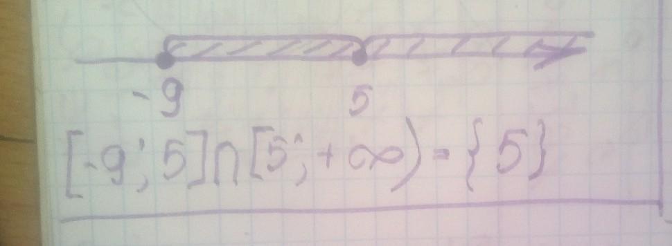 3. Используя координатную прямую найдите пересечение промежутков: [-9;5] и [5;+Бесконечность). [2]