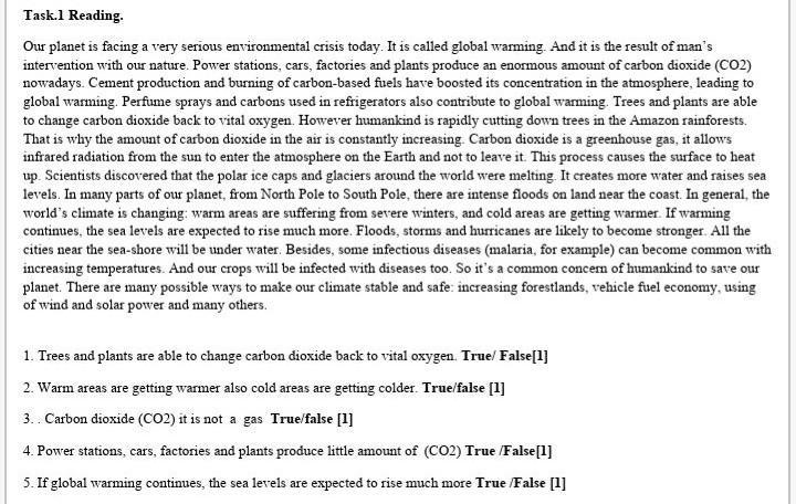 5. If global warming continues, the sea levels are expected to rise much more True /False