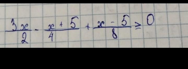 сначала приведём к общему знаменателю: (12х-2х+10+х-5)/8, потом посчитаем и получим: 11х/8+5/8, всё умножим на восемь и получим 11х+5>= 0, с координатной плоскостью разберись сам.