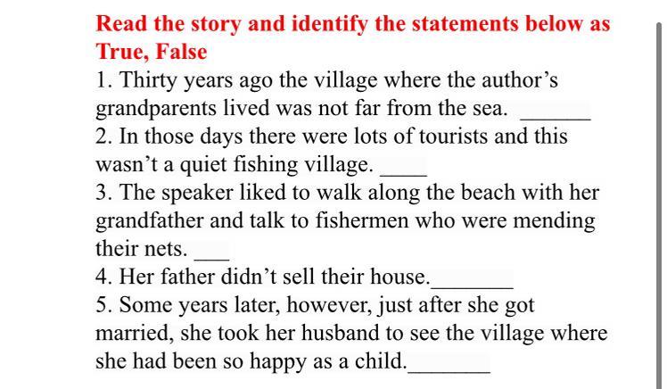 When I grew up I no longer went to the village for my holidays, but we still visited my grandparents from time to time until they' both died. And then my father sold the house. Some years later, however, just after I got married, I took my husband to see the village where I had been so happy as a child. I noticed then that everything was already changing.«ППЖЖЖЖ ПОМОГИТЕ »ОЧЕНЬ МАЛО ВРЕМЕНИ ОСТАЛОСЬ ПЖЖЖЖ