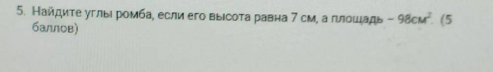 Найдите углы ромба если его высота равна 7 см а площадь 98 см в квадрате
