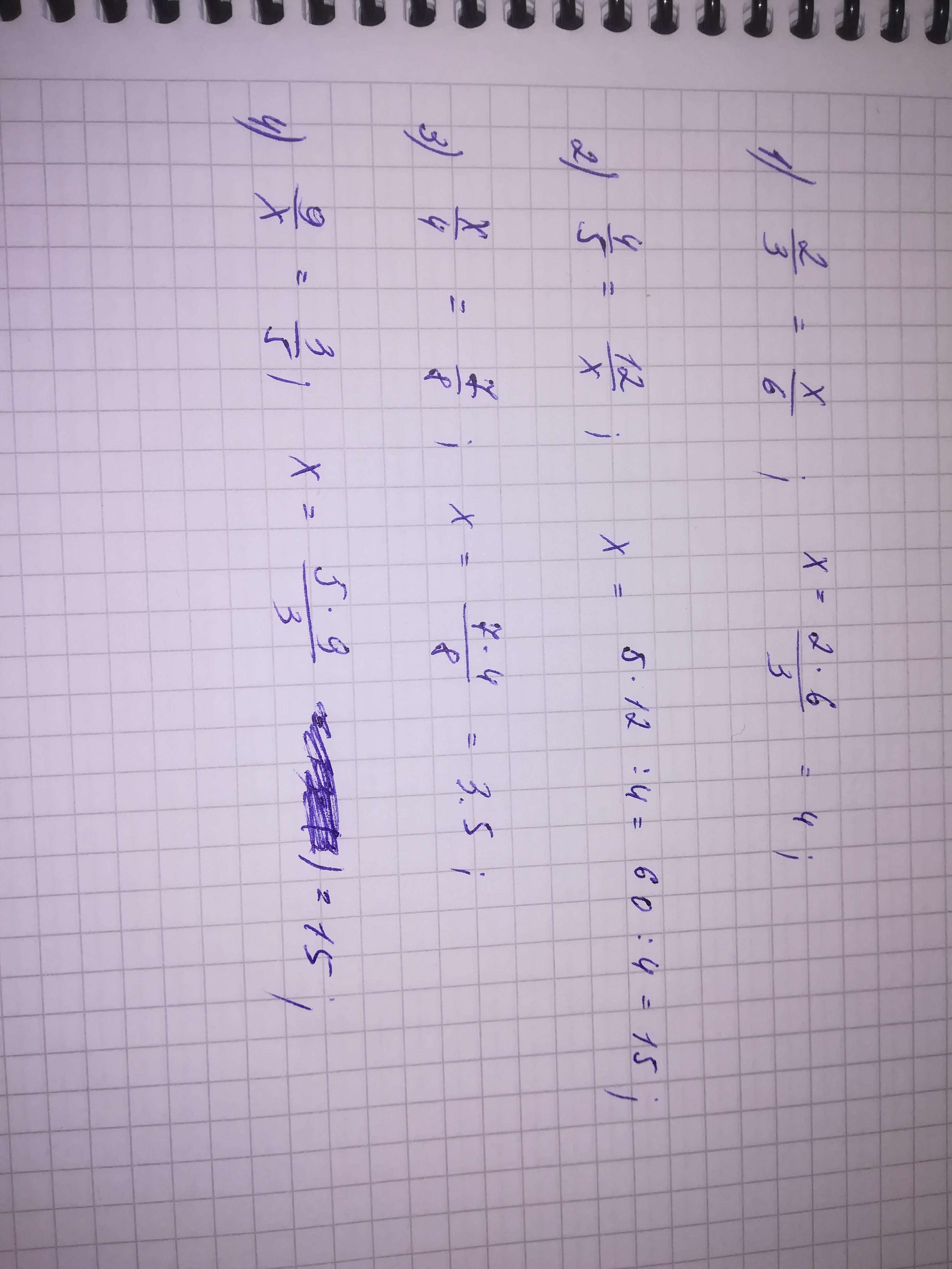найдите неизвестный член пропорции 1)2/3=х/6 2) 4/5=12/х 3) х/4=7/8 4) 9/х=3/5