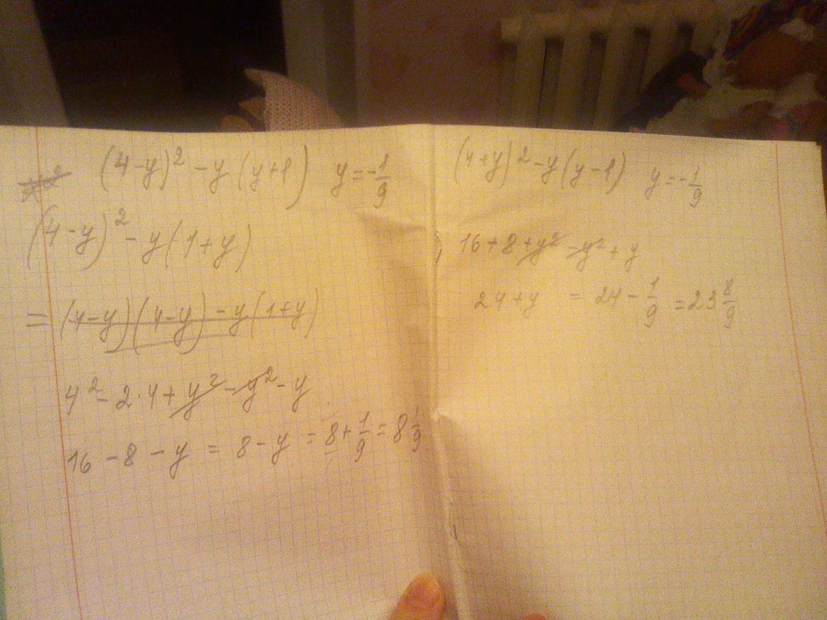 Упростите выражение ( 4 − y ) ^2 − y ( y + 1 )