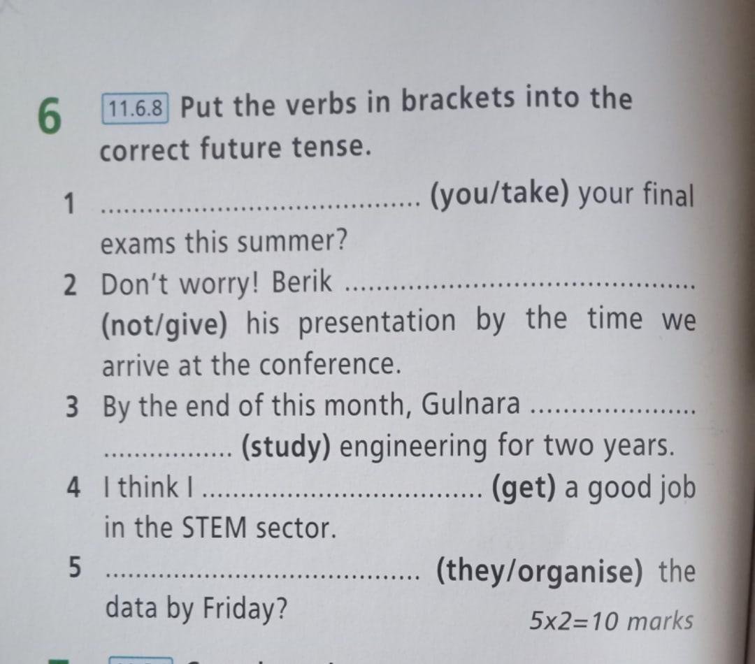 3. By the end of this month, Gulnara will have been studying engineering for two years.