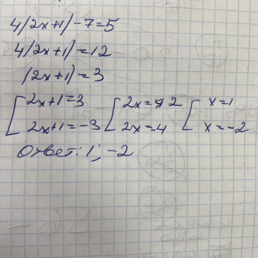 Теңдеуді шешініз: 4| 2х+1| -7=5