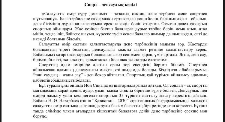 Төменде берілген мақал-мәтелдің қайсысы мәтін мазмұнына сай айтылған. (1 балл)