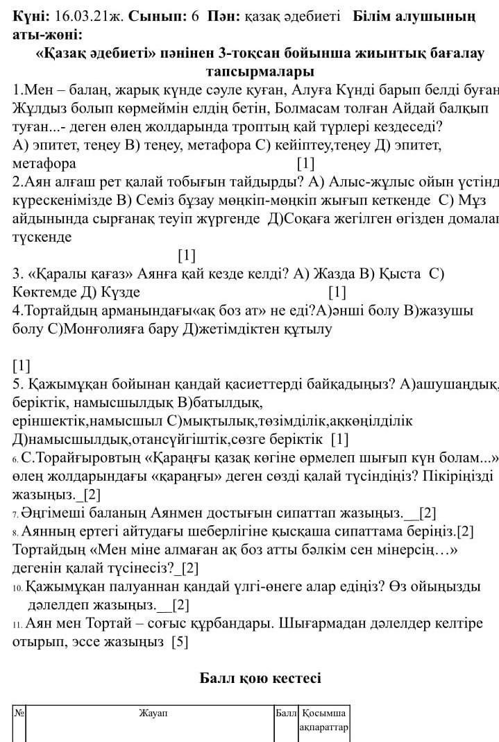 РД мыне барлык ответь сендер ушин мен ушин тунин бір уақытында істедым енды багалап кетындершы отнем лайк басып оценить етындерш отнем барлыгы дұрыс анда ошибкыга мән бермендер давайте 6 сынып ТжБ 3токсан