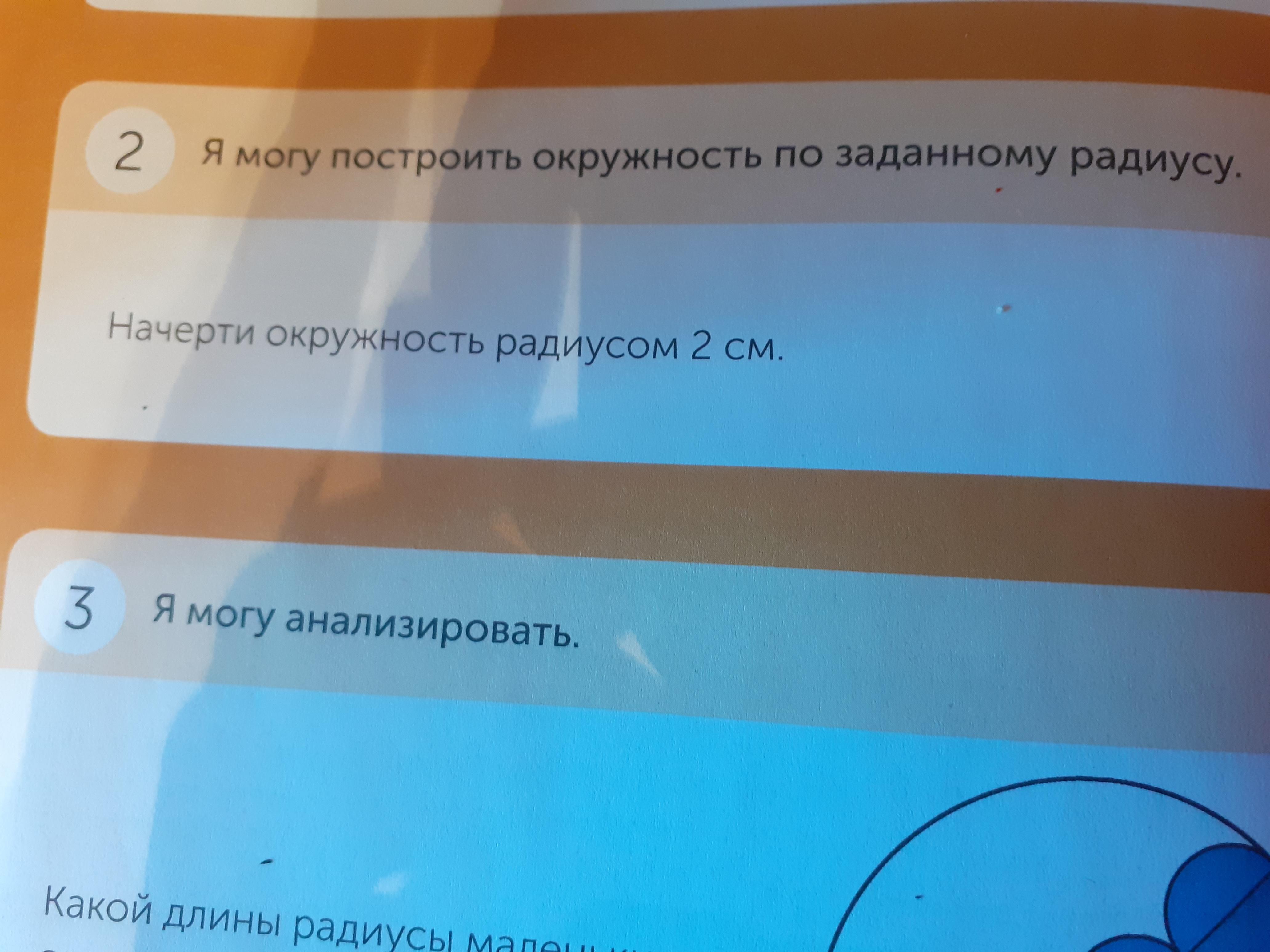 2. поставь рядом с ним линейку чтобы между двумя ногами циркуля был 1 см