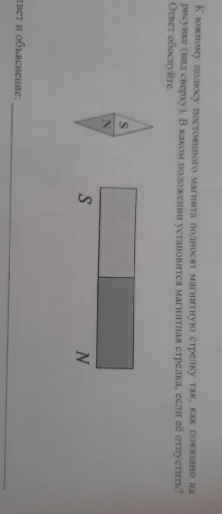 к южному полюсу постоянного магнита подносят магнитную стрелку так, как показано н.