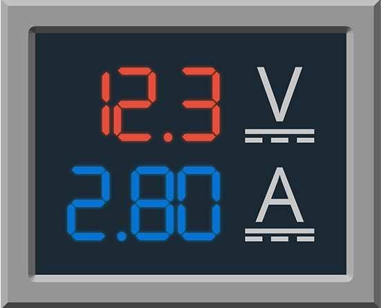 После включения в цепь, цифровой амперметр и вольтметр показали значения силы тока и напряжения в лампе (см. рис.). Какую работу совершит ток в лампе за 1 минуту? Какое кол-во электронов пройдет за это время через спирать лампы?