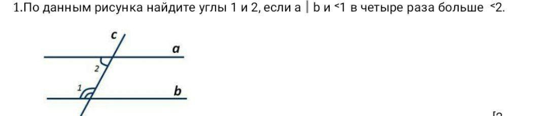 По данным рисунка найдите углы 1 и 2,если А и B параллельны и угол 1 в четыре раза больше угла 2