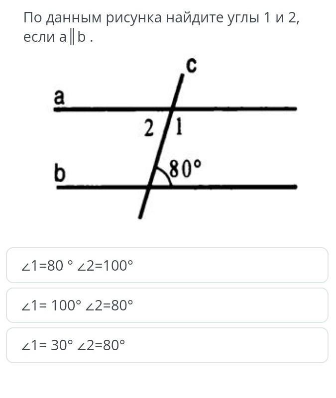а раз а паралелен б и с секущая 1=100 угол 2=80