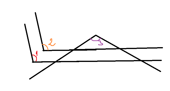 Начертите три тупых угла так, чтобы два из них не имели общих точек, а стороны третьего пересекали бы лишь одну сторону из первых двух углов.