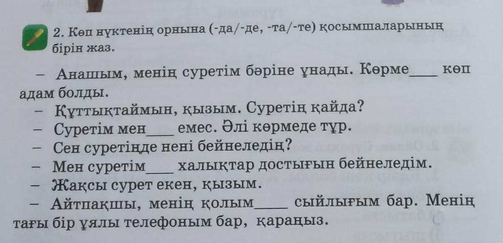 . Көп нүктенің орнына (-да/-де, -та/-те) қосымшаларының