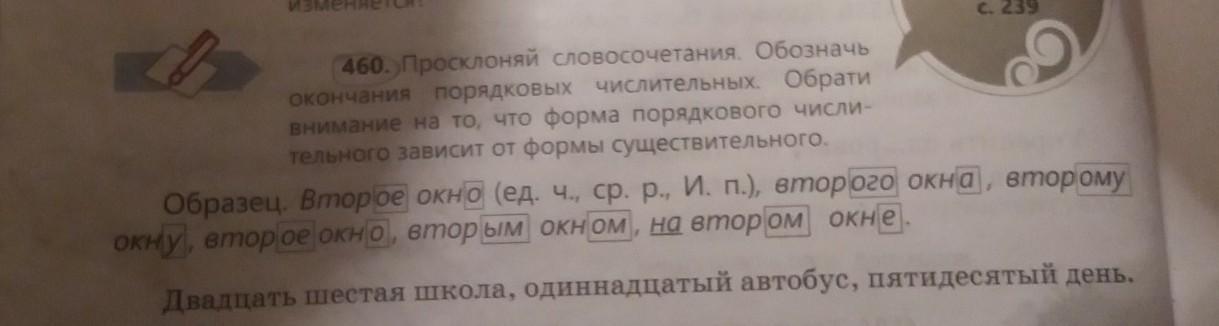 Образец. Второе окно (ед. ч., ср. р., И. п.), второго окна, второму