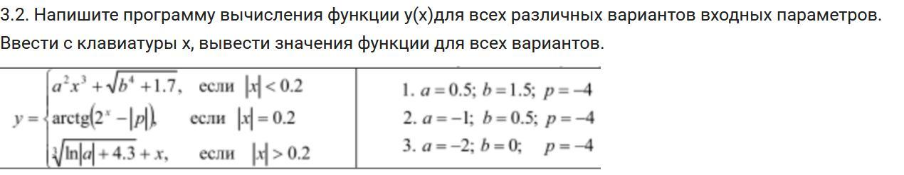 print(f'Вариант {i+1}: {atan(2**x - abs(p[i]))}')