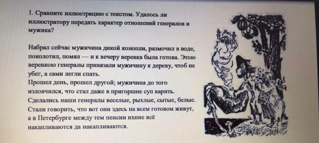 да удалось на иллюстрации изображено отношение генералов к мужику хоть они и благодарны ему за обед они все равно не отпускают его и привязывают к дереву.