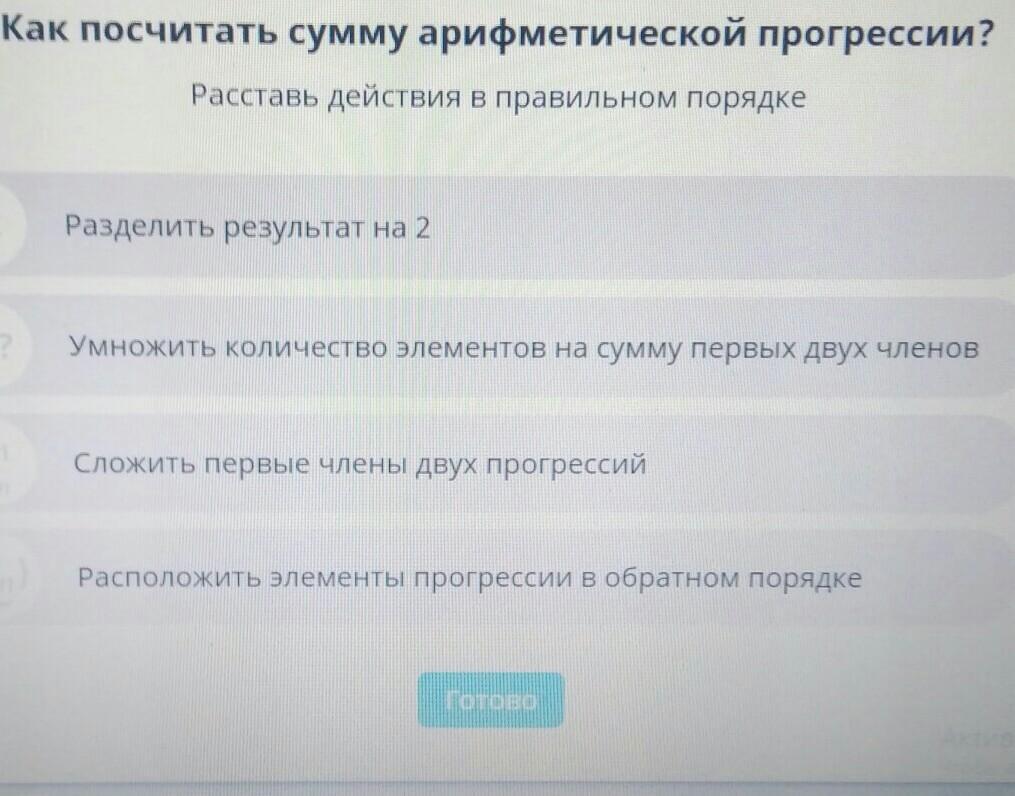 Имеем определённую арифметическую последовательность и определённый первый её член, например, X. Если мы расположим элементы прогрессии в обратном порядке, то последний элемент станет первым. Соответственно, если длина последовательности равна n, то мы как раз получим сумму первого и n-нного члена этой последовательности (нам же нужно найти сумму n элементов). Далее по формуле делим сумму на 2 и умножаем на n, всё по формуле.