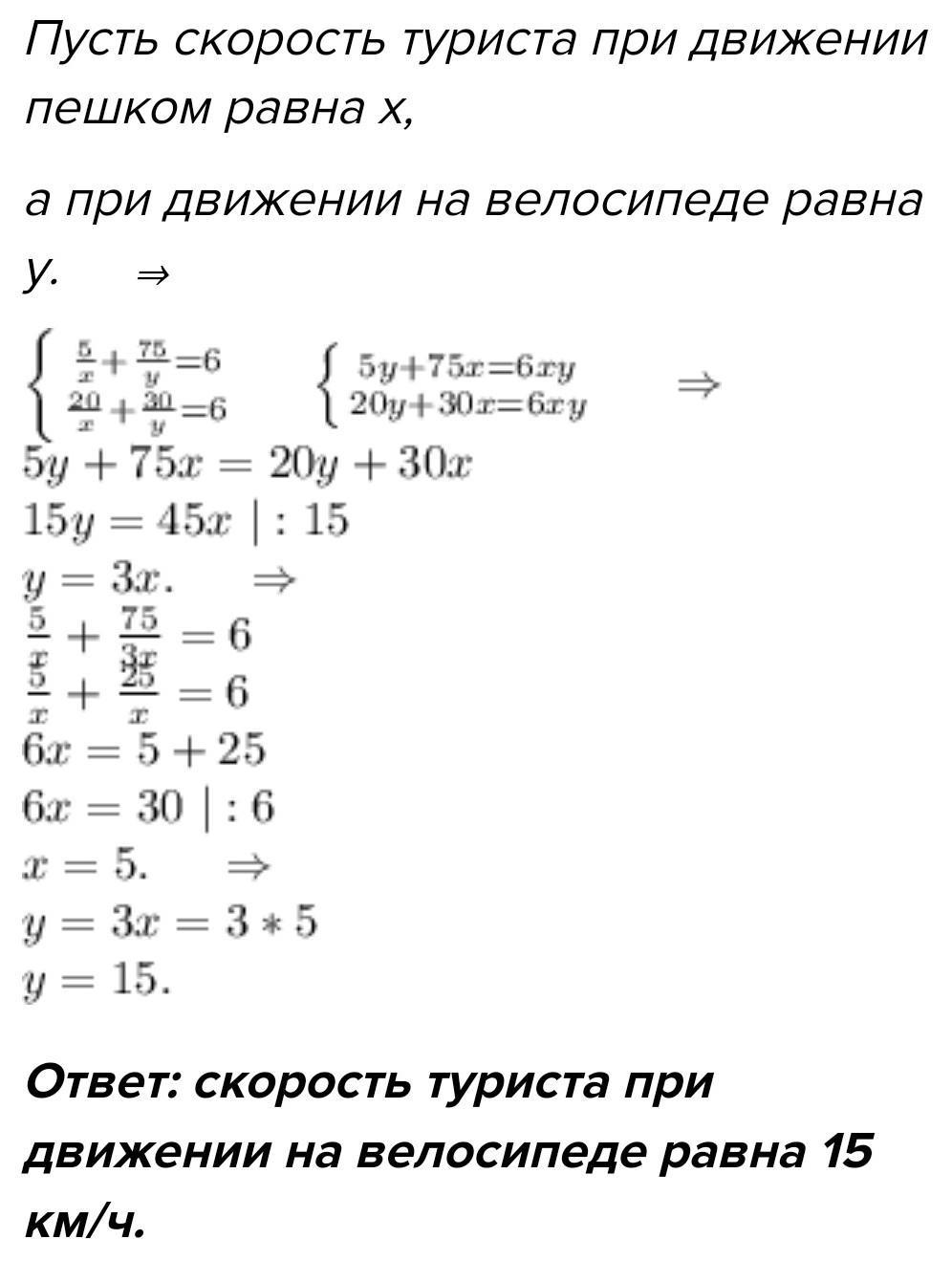 у = 3.4х=17 км/ч (скорость на велосипеде)