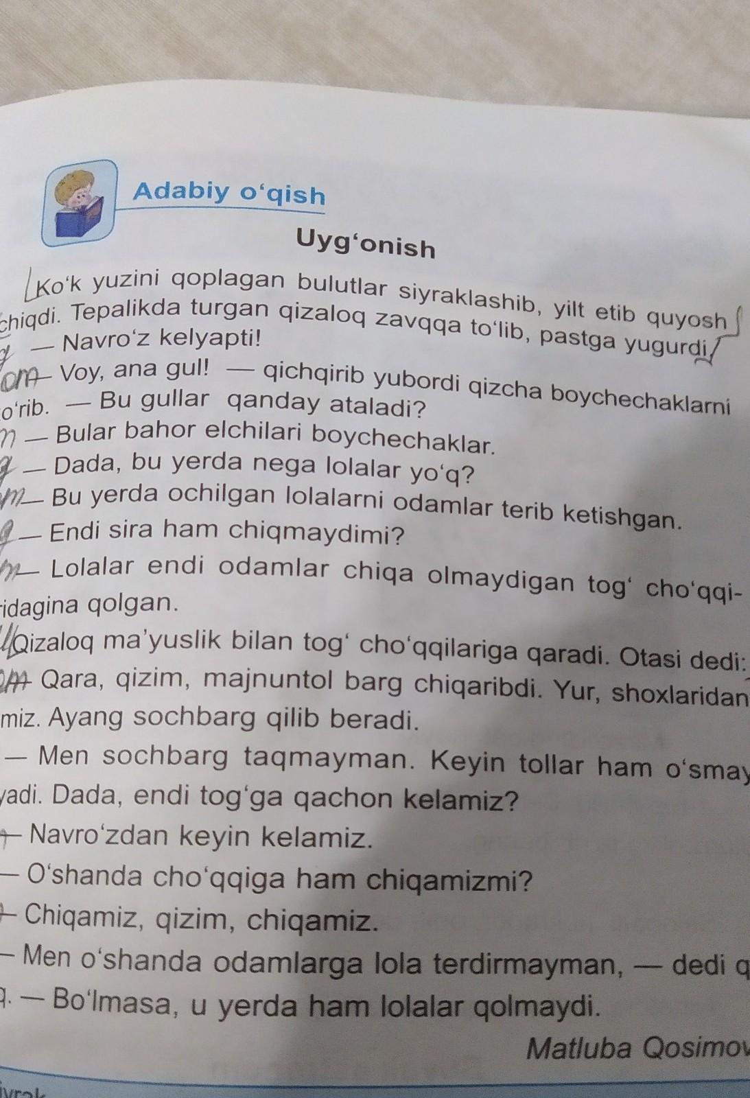 1 tepalikda turgan qizaloq nimaga tulib pastga tushdi? 1 zavqqa