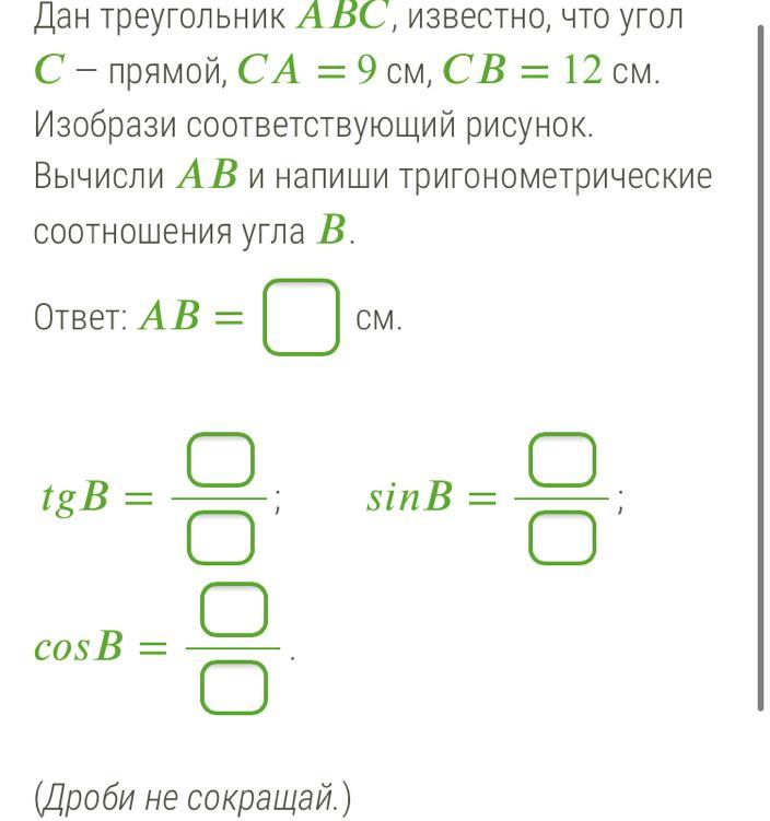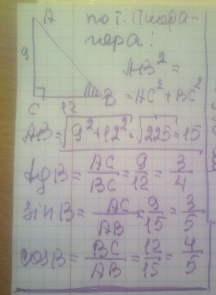 Дан треугольник , известно, что угол — прямой, = 9 см, = 12 см.