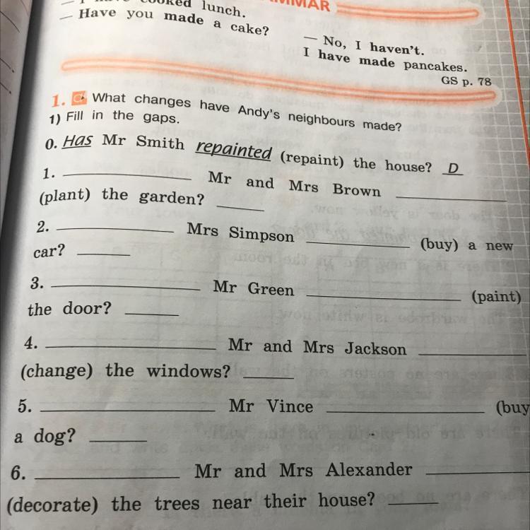 1: Has planted (вставь в пропуски по порядку)