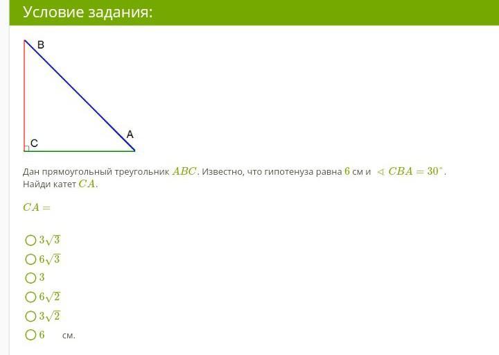 AB - гипотенуза, так как CA лежит напротив угла в 30 градусов по условию, значит этот катет равен половине гипотенузе, т.е. CA = AB/2 =>