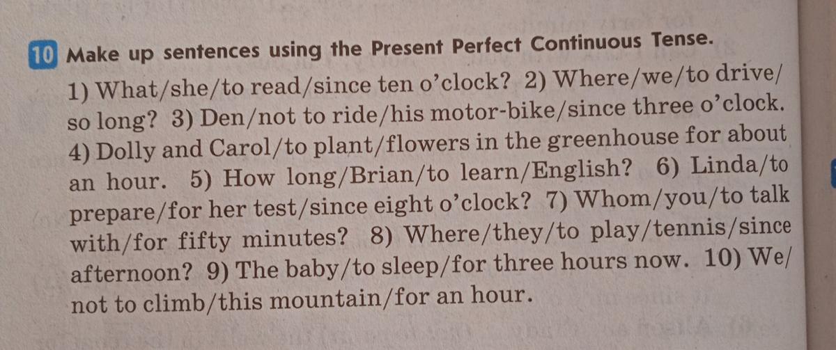 3. Den hasn’t been riding his motor-bike since three o’clock.