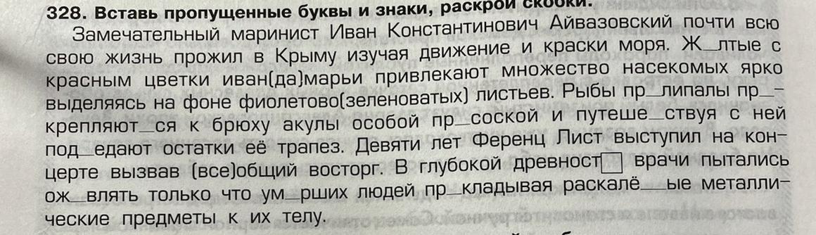 328. Вставь пропущенные буквы и знаки, раскрой скобки.