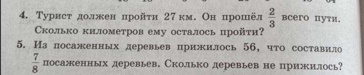 4)27км это 3/3. он прошел 2/3 осталось 1/3. 27:3=9
