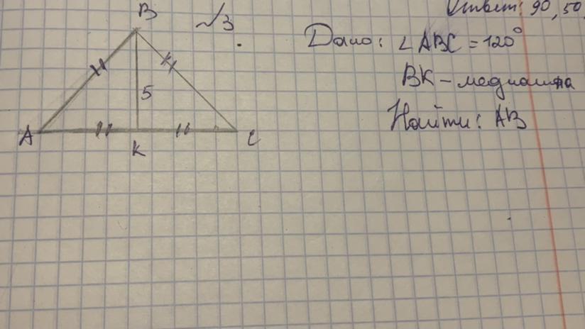 Поскольку треугольник АВС равнобедренный, а угол АВС =120 градусов, то угол ВАС= углу ВСА= 180-120/2 =30 градусов