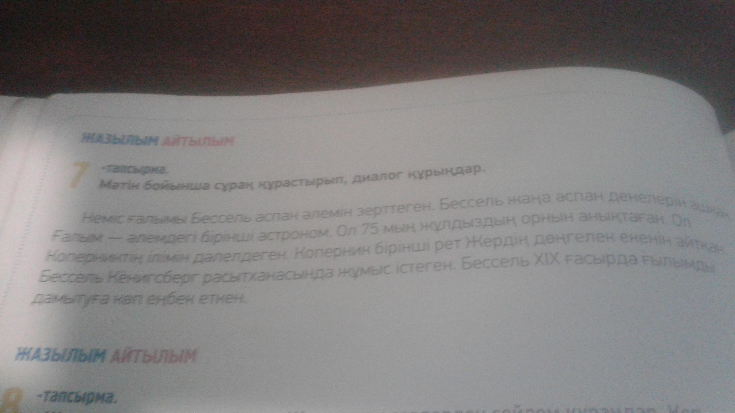 7-тапсырма.Мәтін бойынша сұрақ құрастырып,диалог құра.
