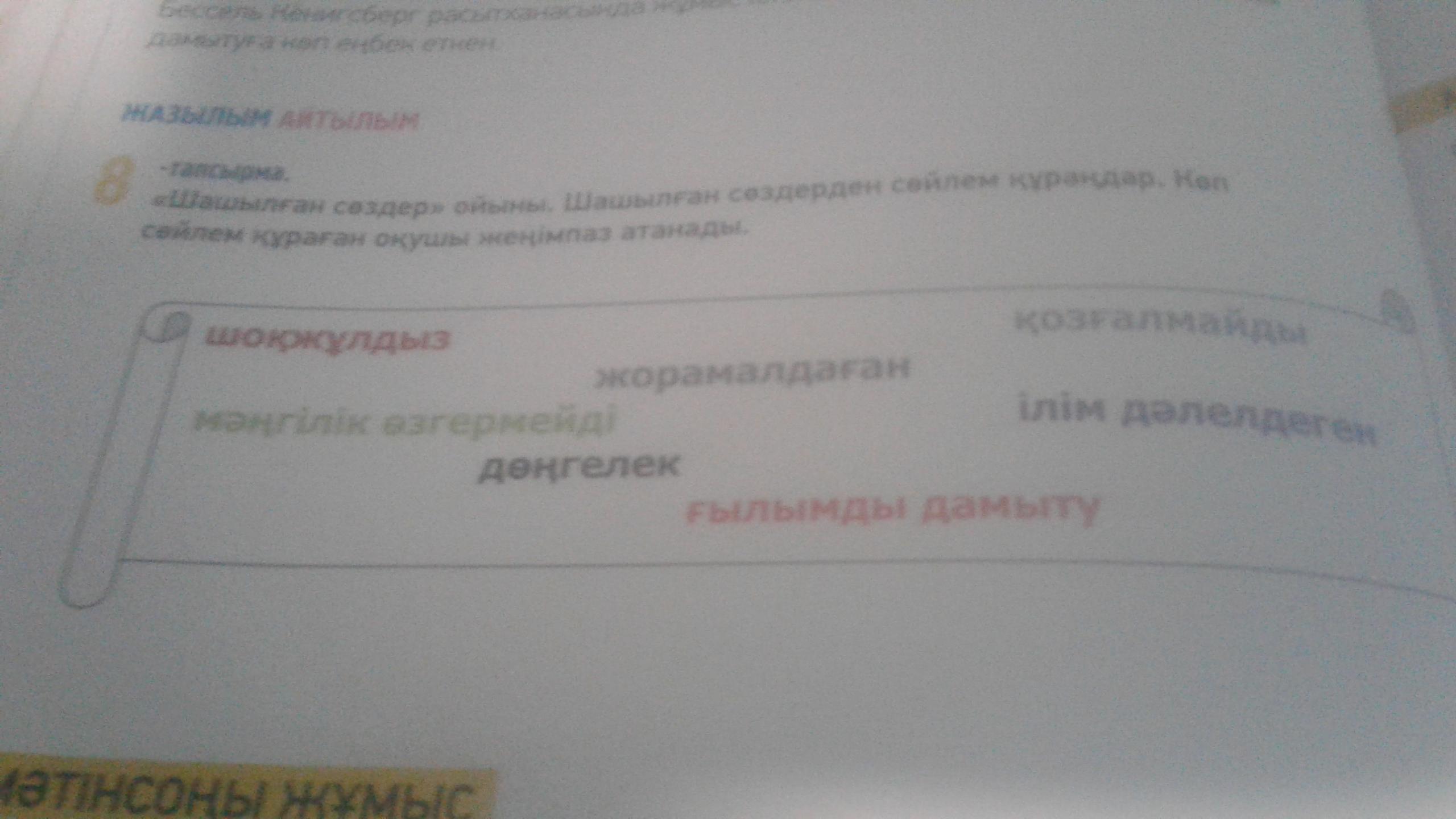 8-тапсырма."Шашылған сөздер"ойыны .Сөздерден сөйлем құра