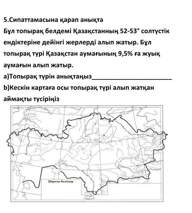 б)гумусы жоғары қазақстанның 52-53° солт. ендіктеріне дейінгі жерлерді кескін картаға түсіреді