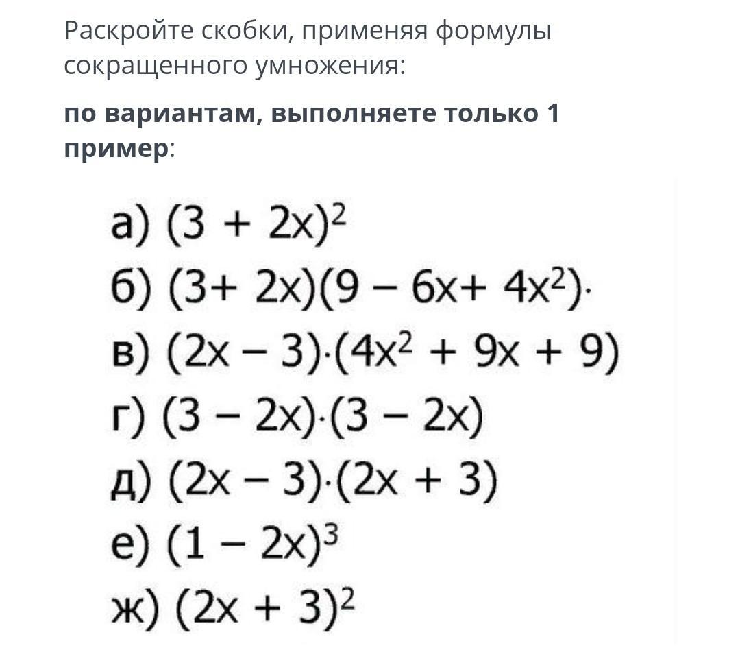 один пример, раскройте скобки при помощи формул сокращеного умножения. только 4 пример! (г)