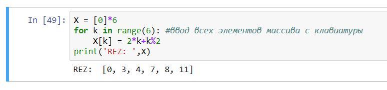 for k in range(6): #ввод всех элементов массива с клавиатуры