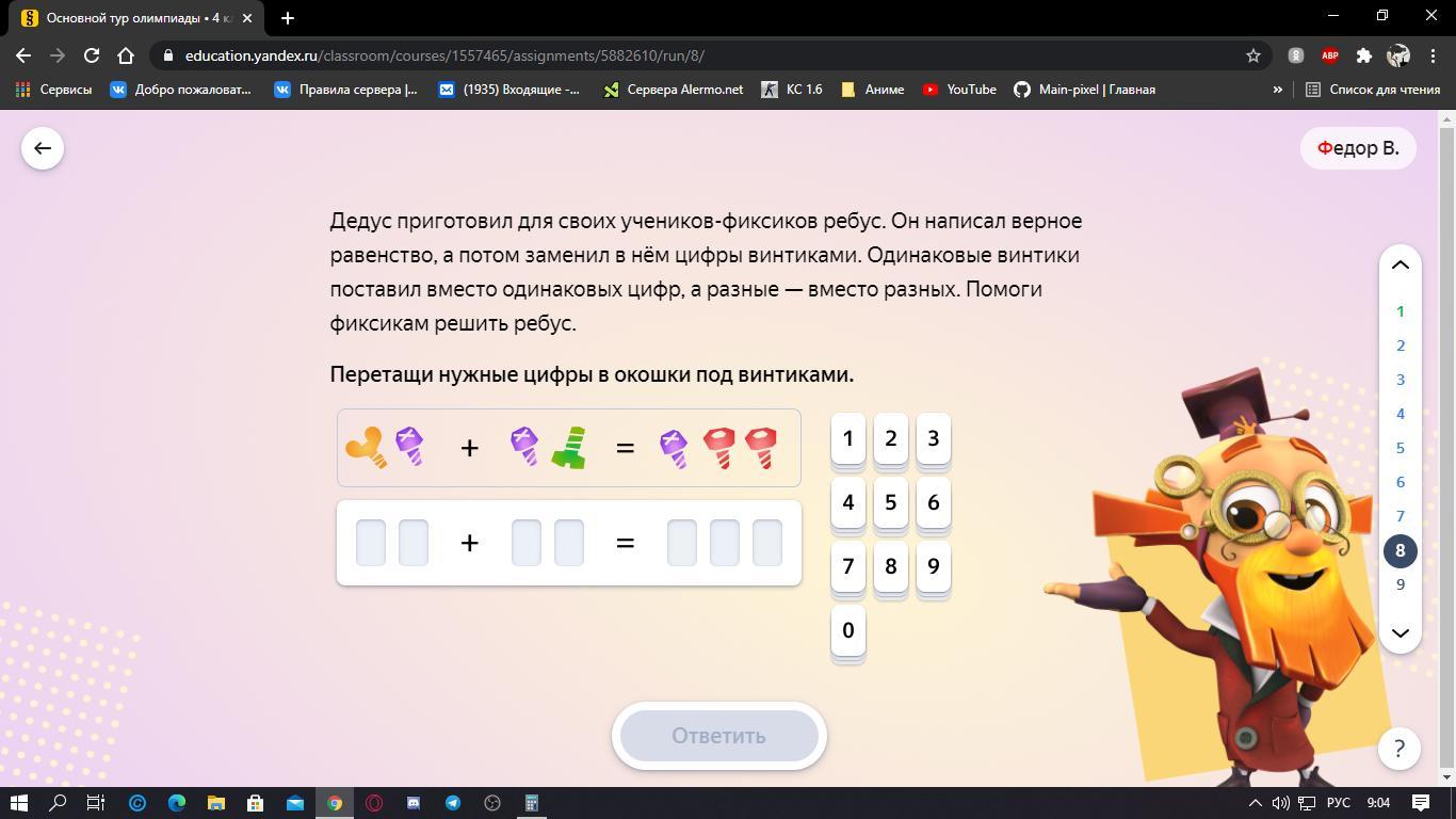 Перетащи нужные цифры в окошки под винтиками.