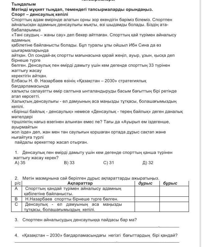 4)ЕлбасыН.Ә Назарбаев өзінің Қазақстан 2030 стратегиялық бағдарламасында халықты салауатты өмір салтына ынталдыруды басым бағыттың бірі ретінде атап көрсетті.