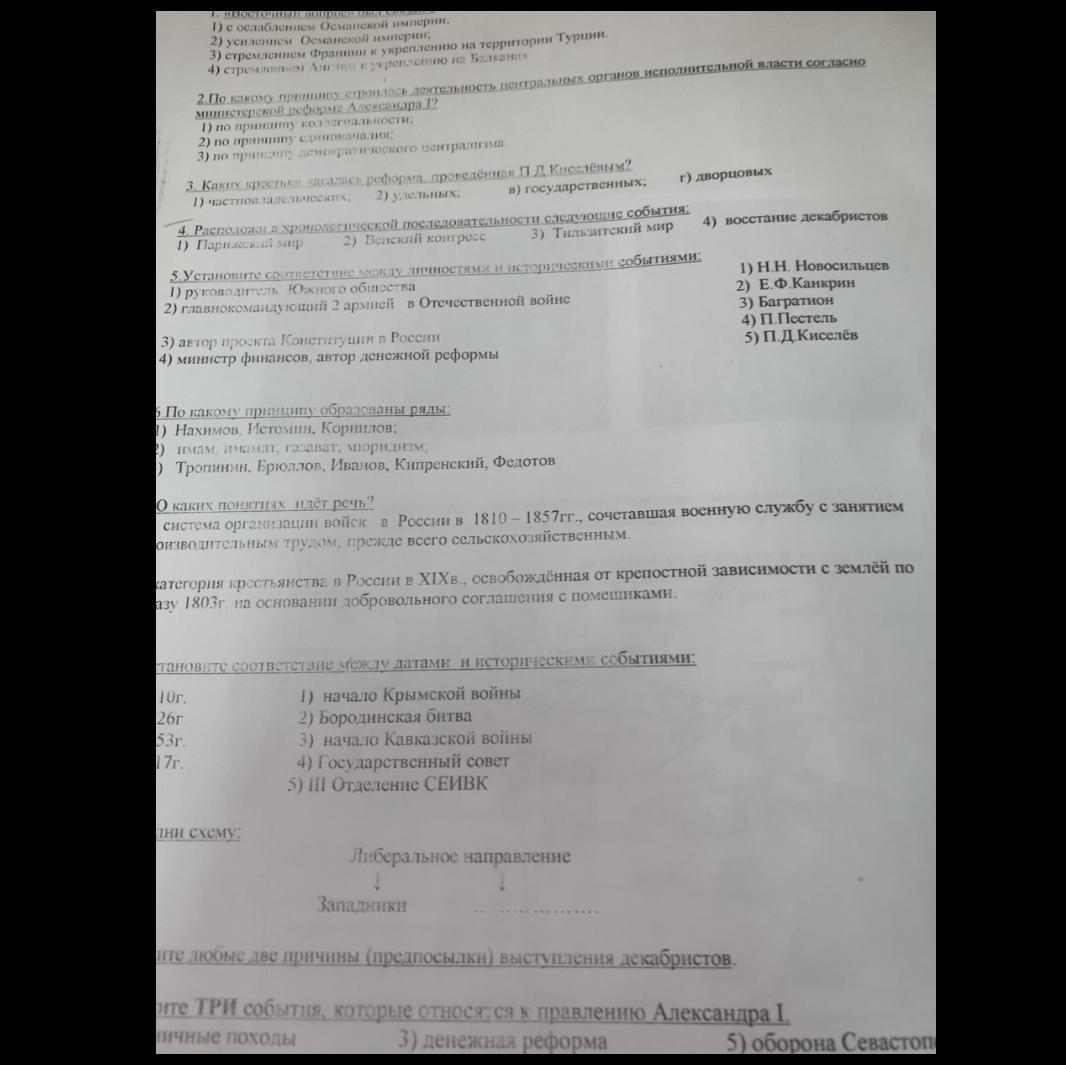 5) 1. 4) Пестель 2. 3) Багратион 3. 1) Новосильцев 4. 2) Канкрин
