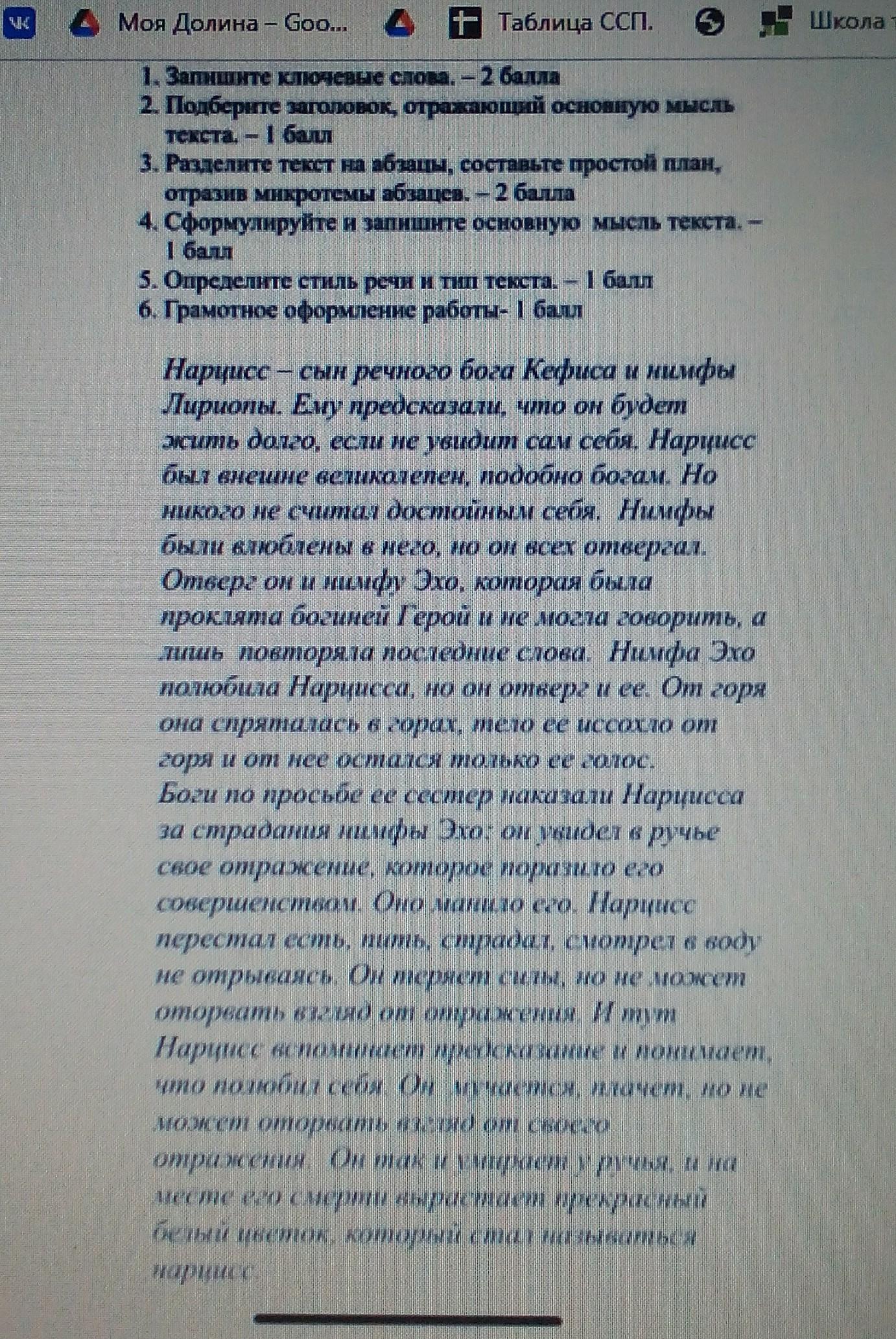 3 абзаца-Нарицесс-сын речного бога и т.д.Нарицесс был внешне впечатлен и т.д.Нарицесс вспоминает предскопатье и т.д.