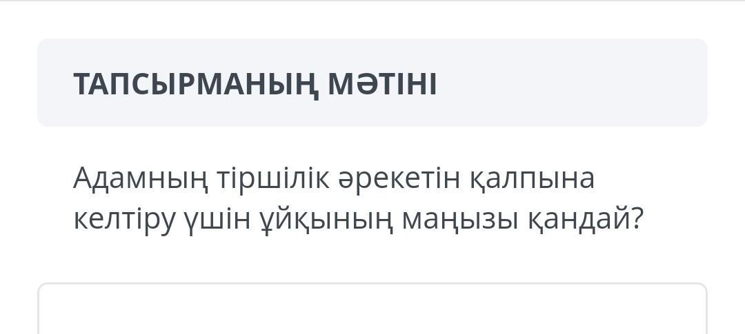 Уйкы адамның куніне басталуына әсер етеді.Уйкы өте манызды ол шаршауды басады.Улкен кісілерге 8 сағат уйыктауга болады ,ал кішкентай балаларга 9 және 10 сағат уйыктау керек