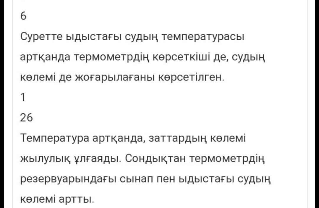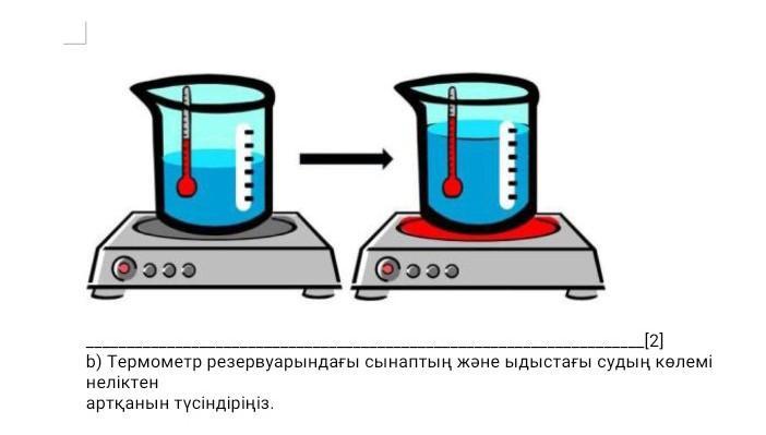 b) Термометр резервуарындағы сынаптың және ыдыстағы судың көлемі
