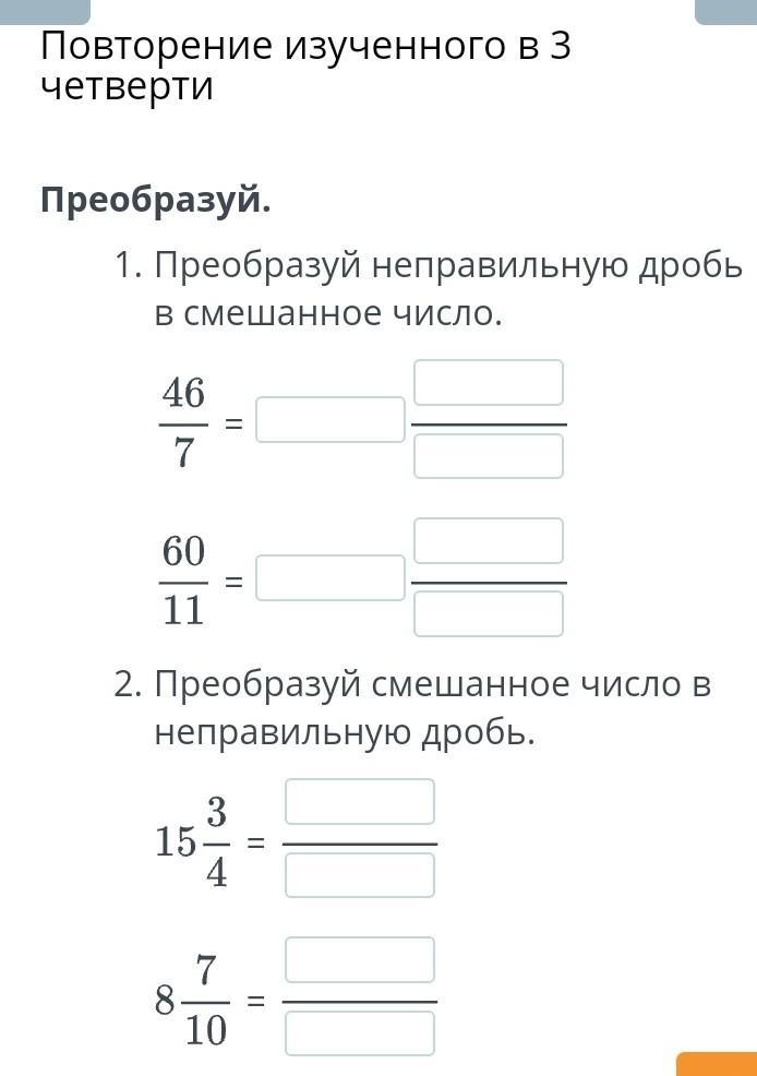 46/7=6-4/7 60/11=5-5/11 15-3/4=63/4.8-7/10=87/10