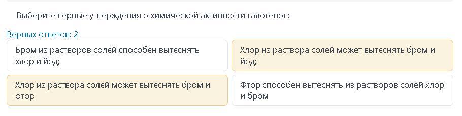 b).Фтор способен вытеснять из растворов солей бром и йод;
