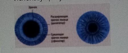 Суженность зрачка зависит от уровня освещение. чем ярче - тем уже зрачок, чем темнее - тем шире он.