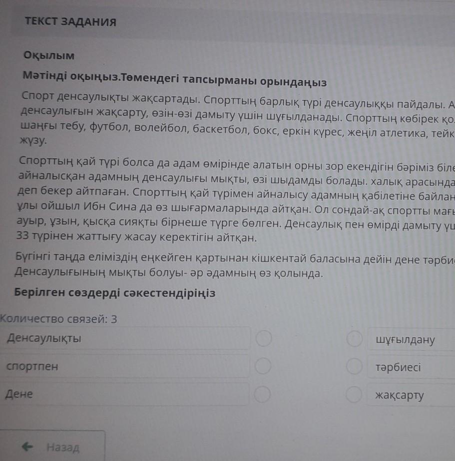 Берілген сөздерді сәкестендіріңіз