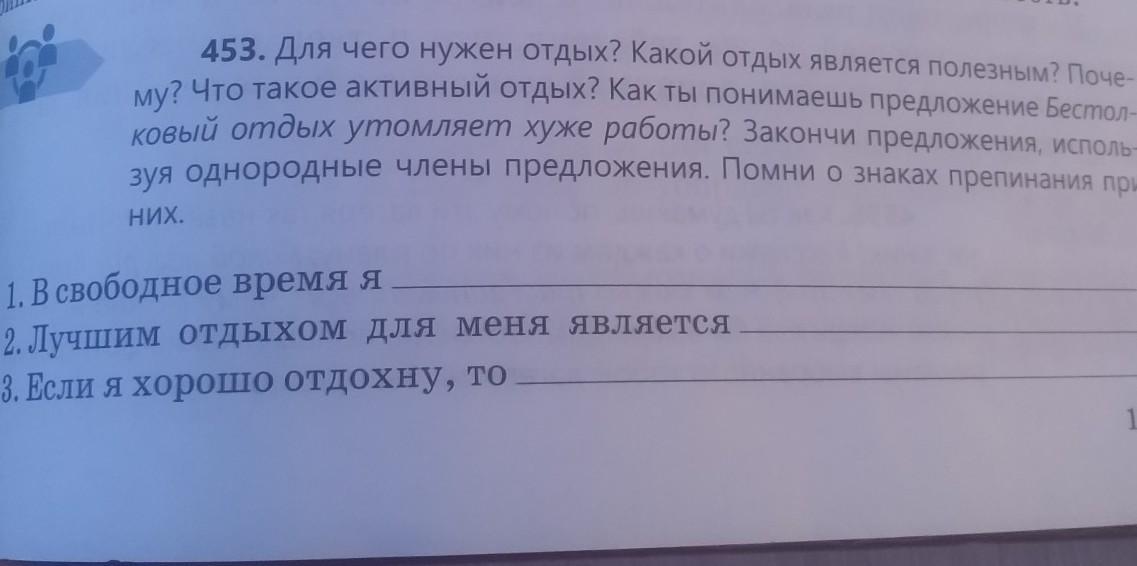Ответ:1-отдыхаю2-что то одно выберите или напишите все- чтение книг, рисование, готовка и сон.3-у меня появится энергия что бы продолжить или начать делать дела
