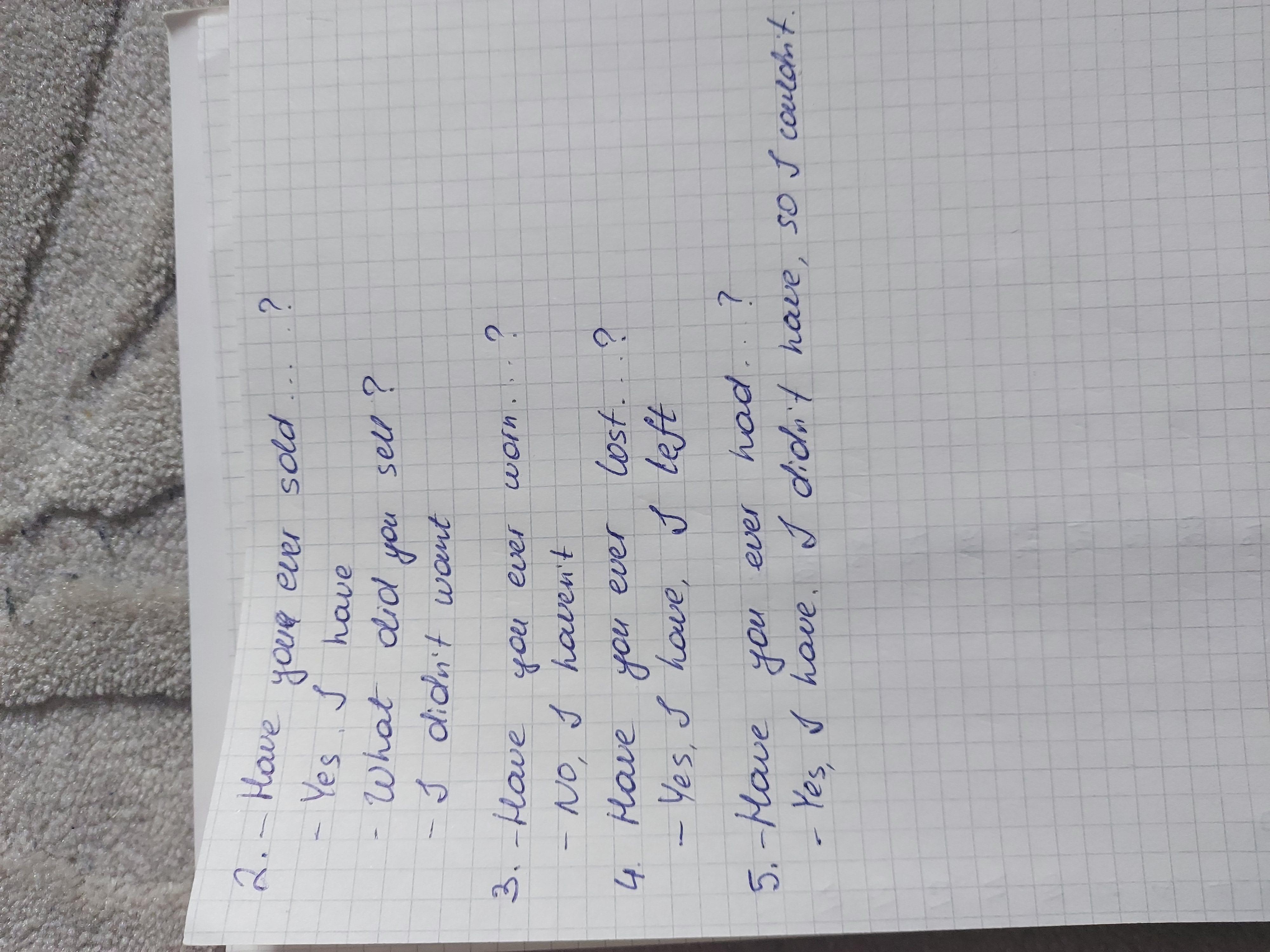 В: have left . have you ever had, didn't have couldn' .