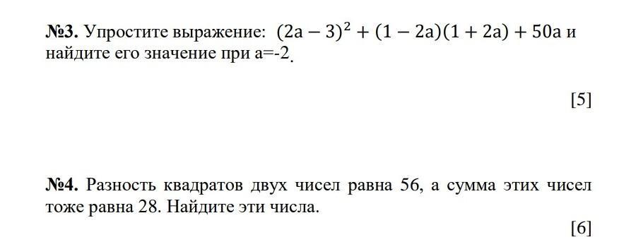 №3. (2a-3)² + (1-2a)(1+2a) + 50a, при а= -2.