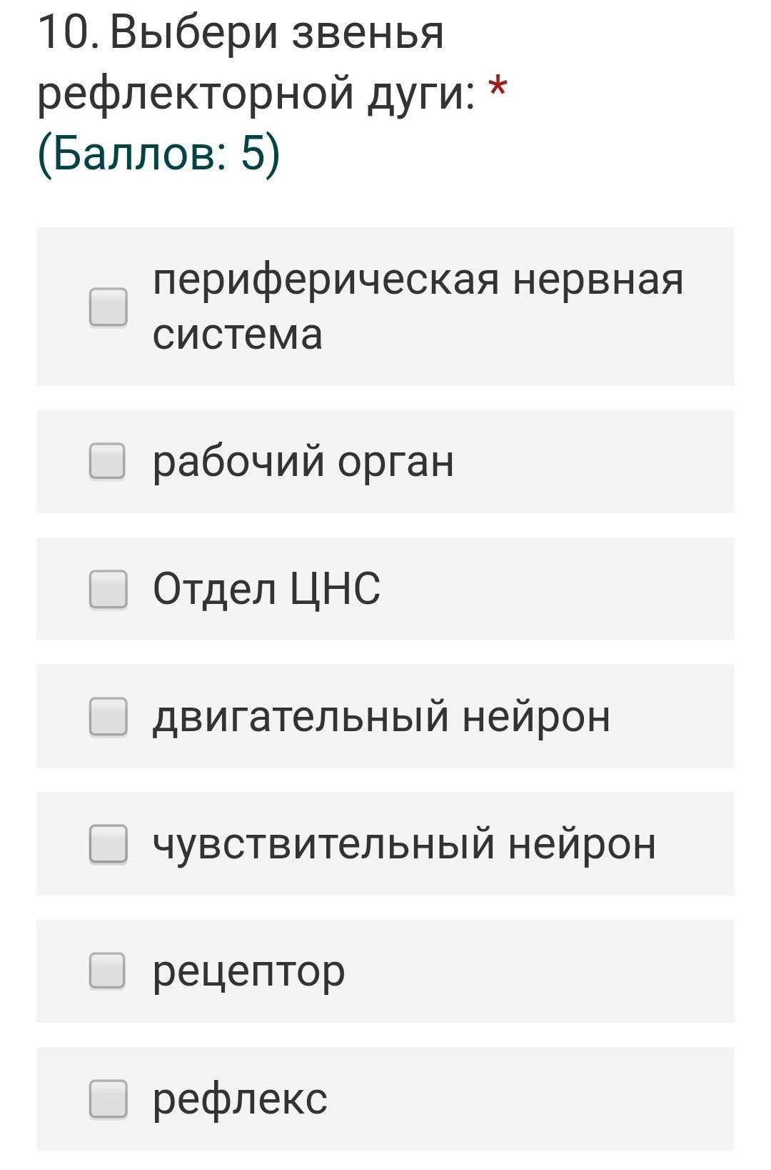 Рабочий орган, двигательный нейрон, рецептор, чувствительный нейрон